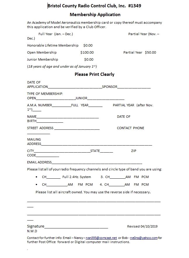 BCRCC Membership Application. You must first have an active AMA Membership to join