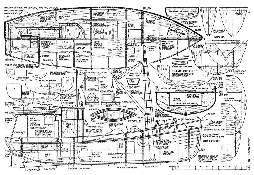 Here is a very nice hard to find classic fishing vessel plan for modeling. The plan was submitted from Dodgy about 5 years ago in Vintage- Old Timer Boats thread.This "FV KINGFISHER", plan was published in a 1958 issue of American Modeler Magazine.