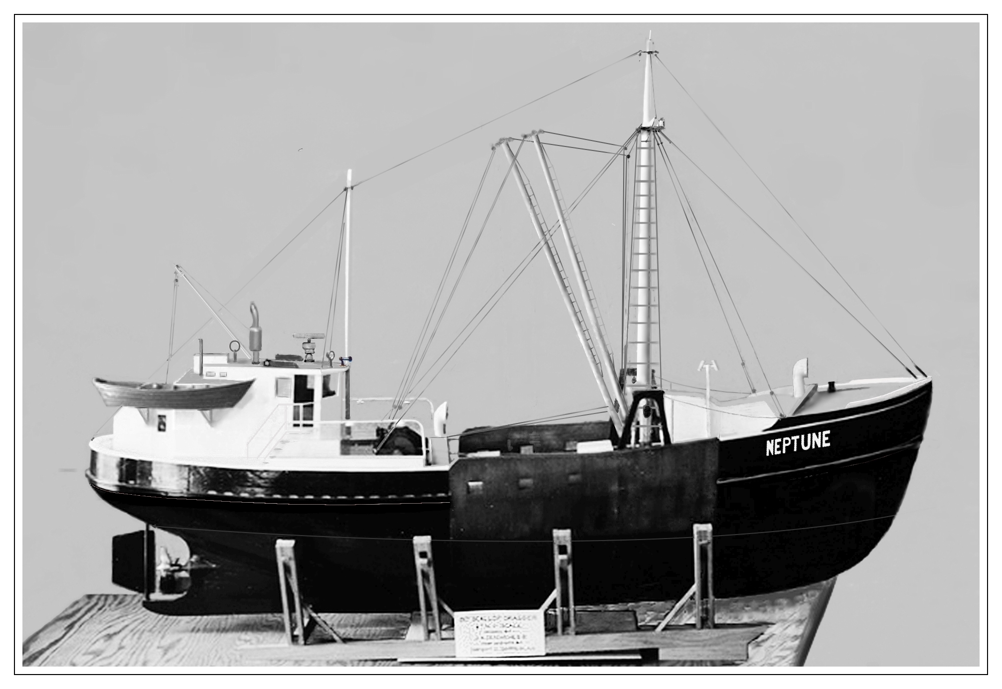 I have also found another Scalloper model of a Harvey Gamage built 1960 NEPTUNE . You can see the dory sitting on the pilothouse roof. Some of this era of boats carried 2 of them. They served dual purpose lifeboat or other emergencies like going after a man washed overboard. The newer boats as I mentioned earlier now carry a lifeboat in a container on the roof. The scallopers fished 2 drag nets on the bottom from both sides of the boat.