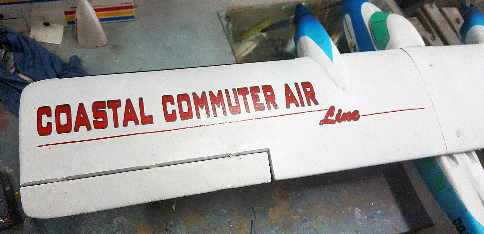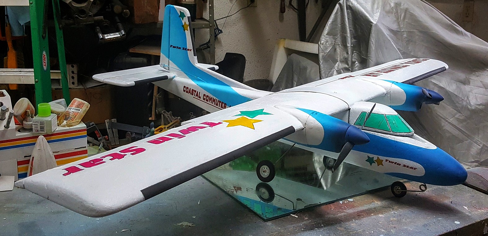 Placing the decals on the plane can be tricky sliding them around to position them.The Twin Star decal on the right wing is the original. This is just about the finish on the decorating the model Once my touch ups are all done it will be time to seal all the flat paint and decals with a polyurethane spray. Then it will be the basic electronics setups. Hopefully I can later this year post a YouTube video link in here.