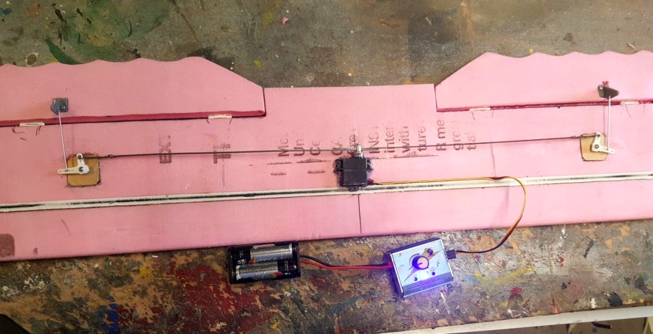 Next with the inner wing cabanes for the op wing he angles were st and the height measured to match the jig heights. The wing was scrutinized to be straight and sit correct. Remove the wing after measured and eyeballed to gue down the inner top wing cabanes struts. Now that I am here I stopped and I am now fitting a single middle servo for the ailerons. Possibly that will be done this week and then hinge the ailerons and test them. That is it for now.
