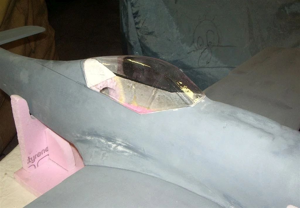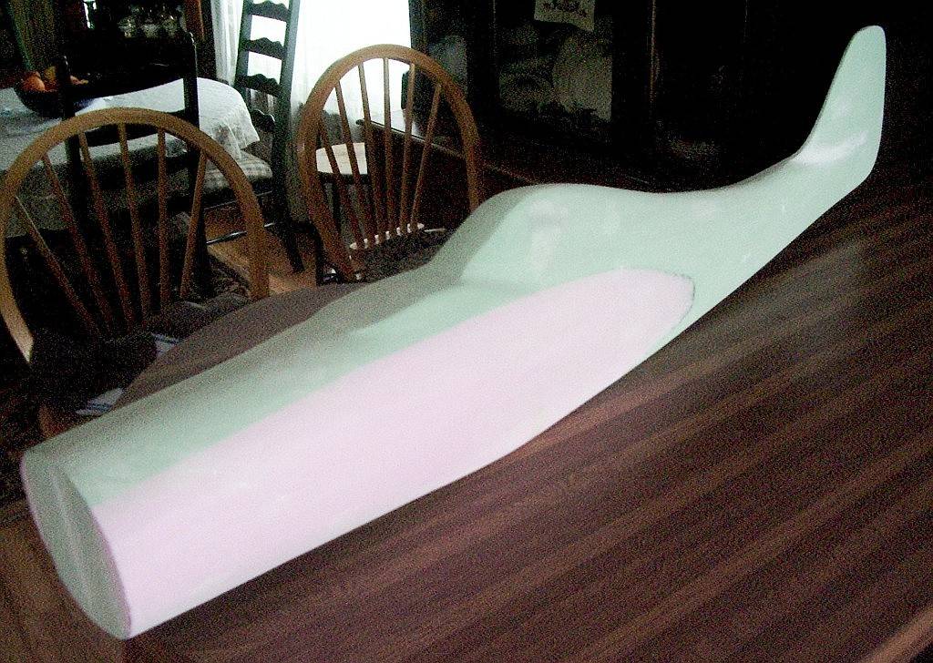 My plug is almost fully shaped for the glass fuselage. I am in the lighter grit sanding now and eyeballing the shape. The dust is bad. I am outside doing it. We got a 50 degree day here after a tough January. Maybe in a couple days I will have the plug smooth enough to do the fuselage. It looks very nice. I ordered the glass cloth from Thayercraft. He has great prices with free shipping.