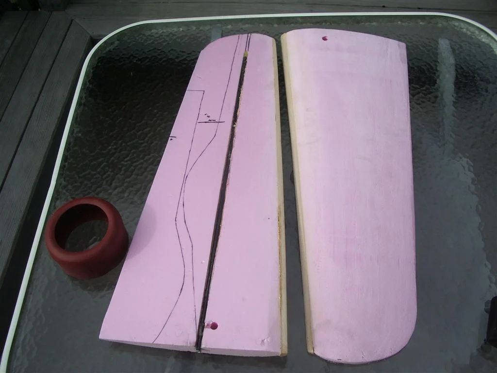b:Sand and fill the wing. Then WBPU the surface with 0.75oz. fibreglass cloth. 2 coats.